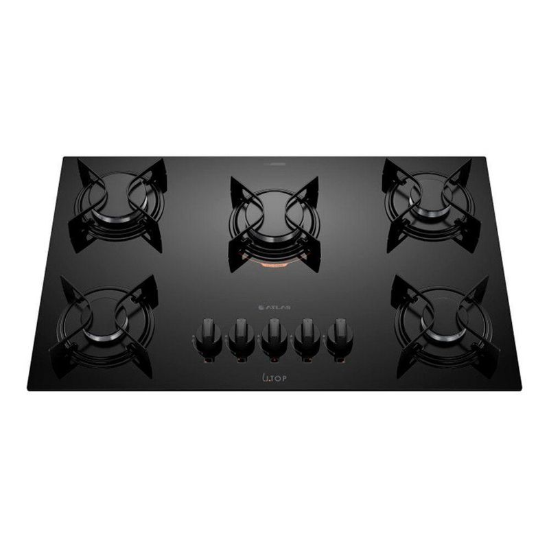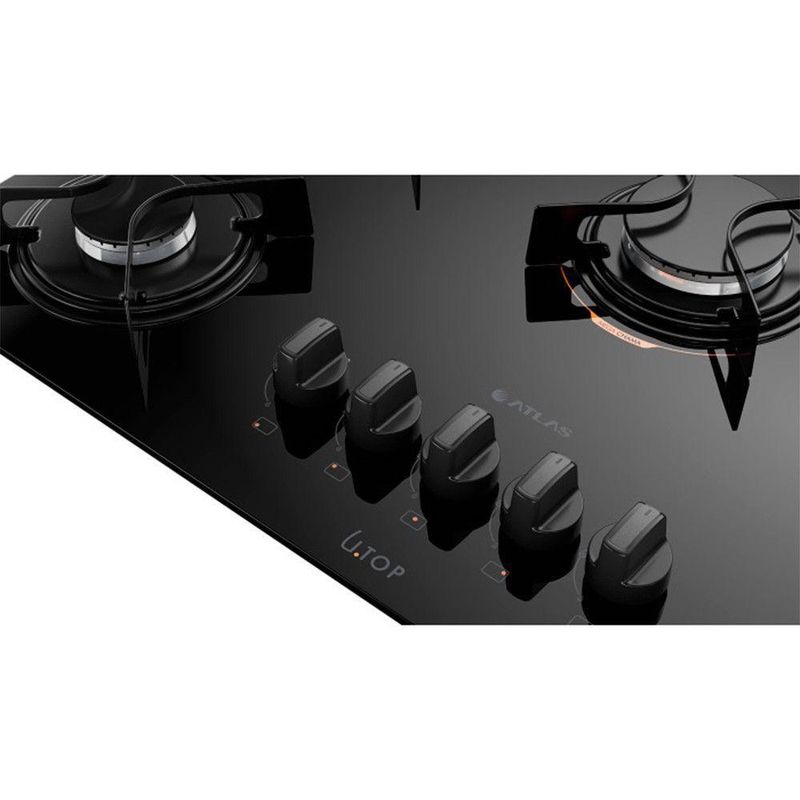 Cooktop 5 Bocas Preto com Mesa de Vidro Atlas U Top