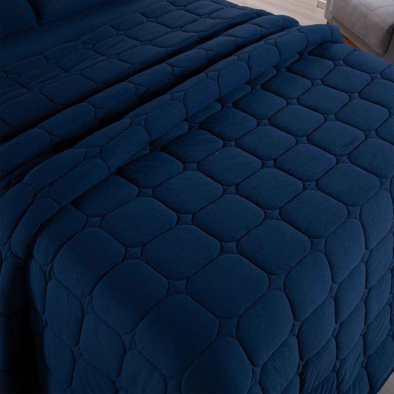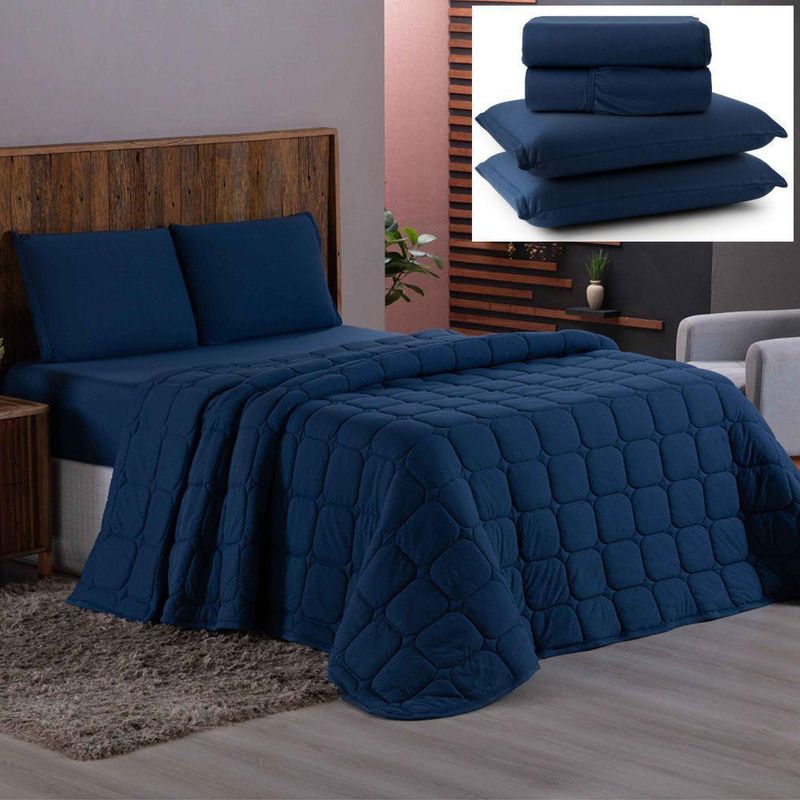 Coordenado Cobre Leito E Lençol Casal Sereno Em Malha 7 Peças - Marinho - 100% Algodão