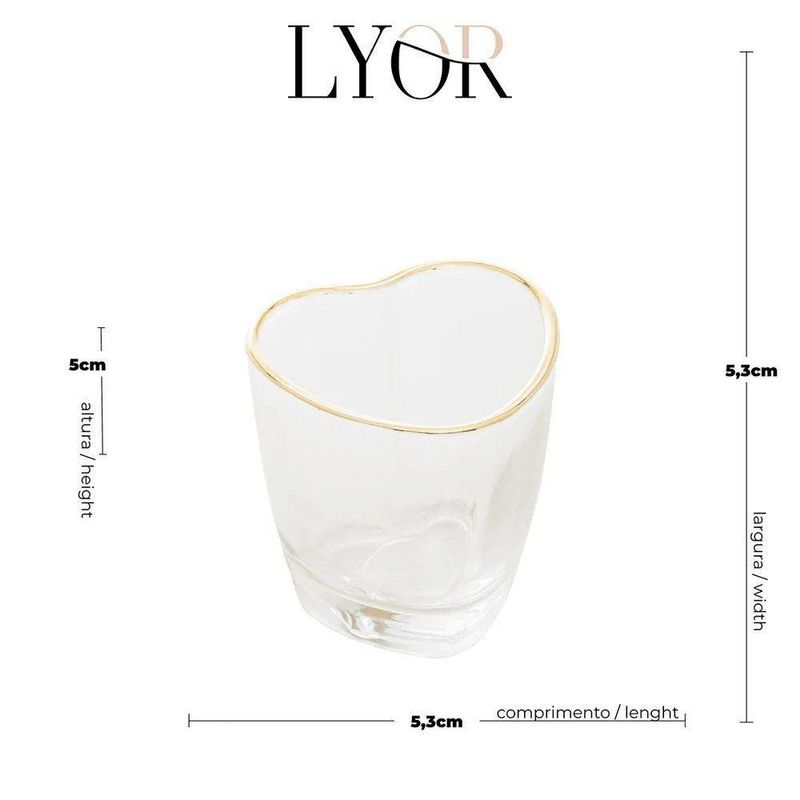 Copo P/ Shot Coracao Borda Dourada 50ml em Vidro Lyor -
