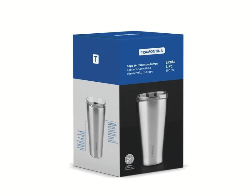Desenvolvido em aço inox, o Copo Térmico Exata em Aço Inox com Tampa 550 ml Tramontina conta com parede dupla e isolamento a vácuo, duas características que mantém seu café, chá ou drink na temperatura ideal por um tempo maior. O copo é livre de BPA, é fácil de lavar, não mancha e não retém odores, o que permite que seja utilizado com diversos tipos de bebidas. Ele vem com tampa, possui abertura para beber sem precisar abrir o copo e com acabamento de silicone que facilita a vedação. A escolha ideal para consumir sua bebida favorita com maior praticidade e em movimento, seja caminhando ou no console do carro!