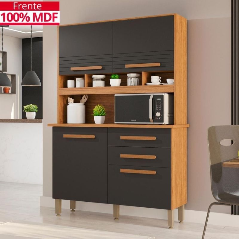 Cozinha 4 Portas 2 Gavetas Sara Frison- Tudo De Móveis Cinamomo/grafite