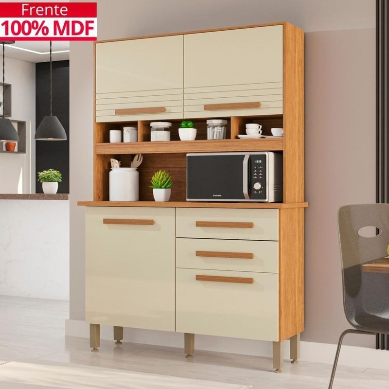 Cozinha 4 Portas 2 Gavetas Sara Frison - Top DecorSe você procura por uma cozinha compacta, funcional e com design sofisticado, a Cozinha Sara Frison é a escolha certa para transformar seu ambiente. Composta por 4 portas e 2 gavetas espaçosas, ela oferece excelente capacidade de armazenamento para mantimentos, utensílios, panelas e eletroportáteis, mantendo tudo sempre bem organizado.A estrutura é feita em MDP e MDF, com frente 100% MDF, garantindo maior resistência e acabamento refinado. As portas articuladas com dobradiças metálicas proporcionam praticidade no uso diário, enquanto as gavetas com corrediças telescópicas oferecem abertura total e suave. Além disso, os pés com regulagem permitem nivelar o móvel mesmo em superfícies irregulares, protegendo contra o direto com o chão e aumentando sua durabilidade.Com acabamento em pintura UV, a Cozinha Sara Frison combina estilo atemporal com funcionalidade, sendo ideal tanto para espaços compactos quanto para quem deseja um ambiente prático e organizado.Diferenciais do Produto: