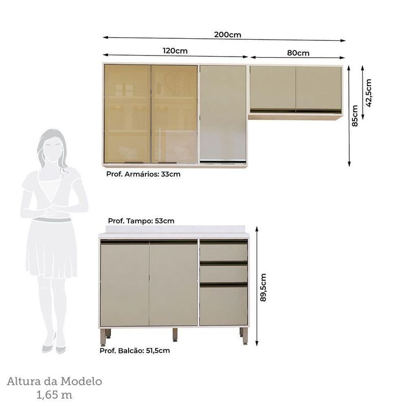 Cozinha Compacta 3 Pecas com Tampo Linea Luciane Moveis