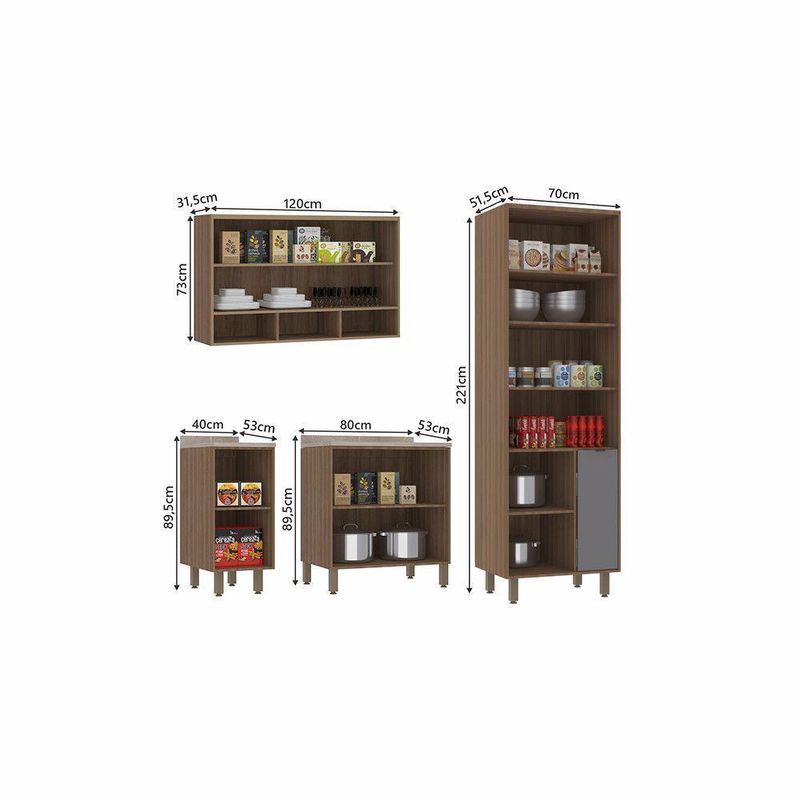 - 1 Paneleiro 70cm 2 Portas e Porta Condimentos Aspen Luciane Moveis