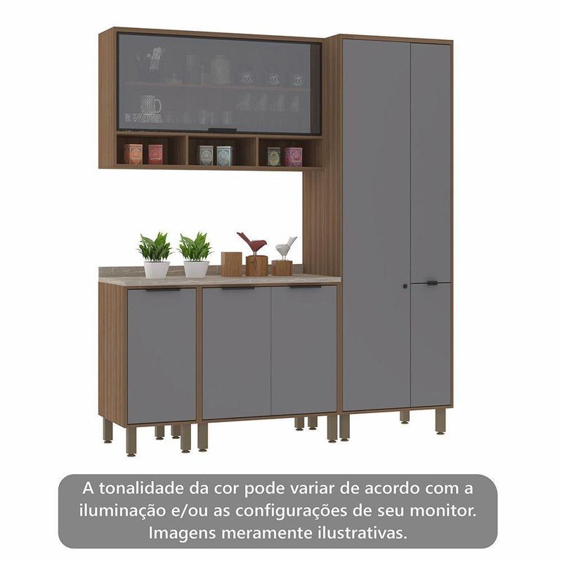 Cozinha Modulada Compacta 4 Peças Balcões Aéreos Com Vidro Reflecta E Tampo Aspen Luciane Móveis Vanilla/cinza Puro