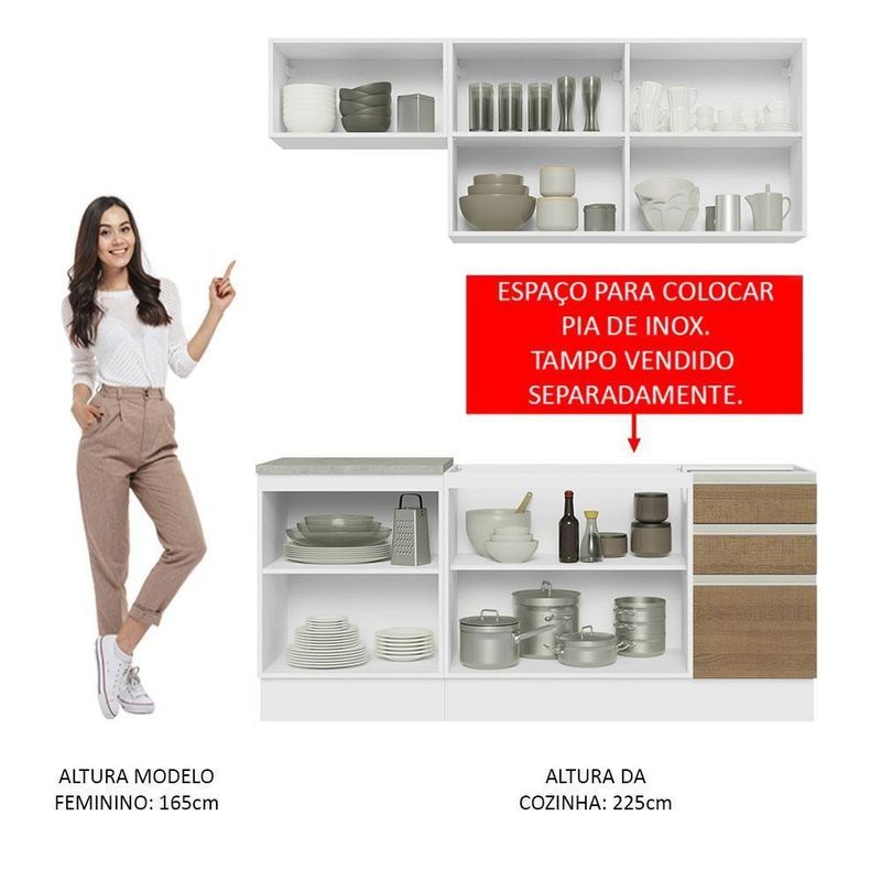 Cozinha Completa Madesa Glamy 180008 Com Armário E Balcão (sem Tampo E Pia) - Branco/rustic Branco/rustic