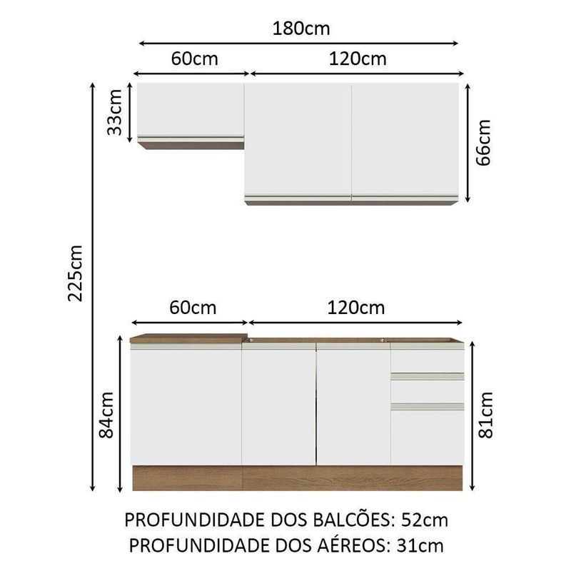 - 52 cm de profundidade nos balcões e 31 cm nos aéreos