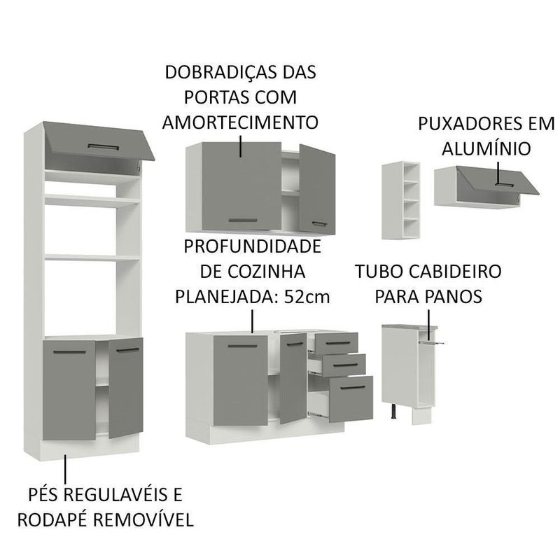 Cozinha Completa Madesa Agata 290003 Com Armário E Balcão (sem Tampo E Pia) - Branco/cinza Branco/cinza
