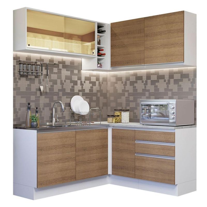 Esta Cozinha de Canto da linha Glamy da Madesa tem como grandes destaques o design moderno, o acabamento de alto padrão e o amplo espaço disponível.