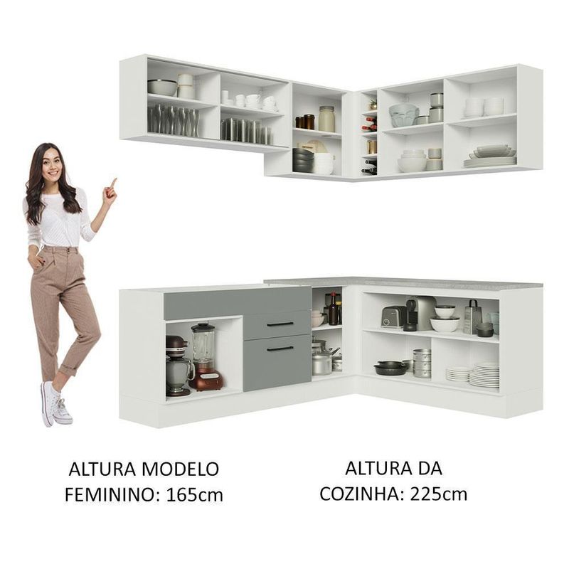 Cozinha Completa De Canto Madesa Agata 389001 Com Armário E Balcão (sem Tampo E Pia) - Branco/cinza Branco/cinza Esta Cozinha Completa de Canto da linha Agata da Madesa possui foco no conforto e na modernidade.