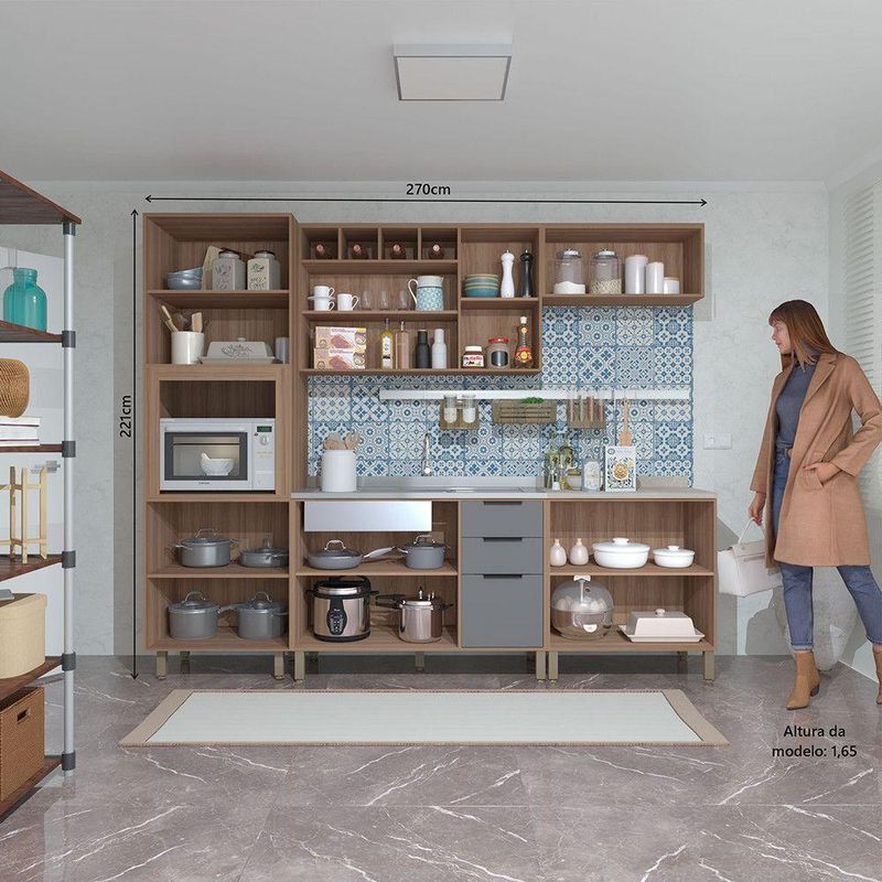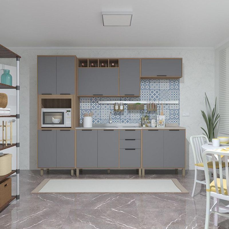 Cozinha Modulada Completa 5 Peças Com Paneleiro Aéreos Balcões Sem Tampo Aspen Luciane Móveis Vanilla/cinza Puro