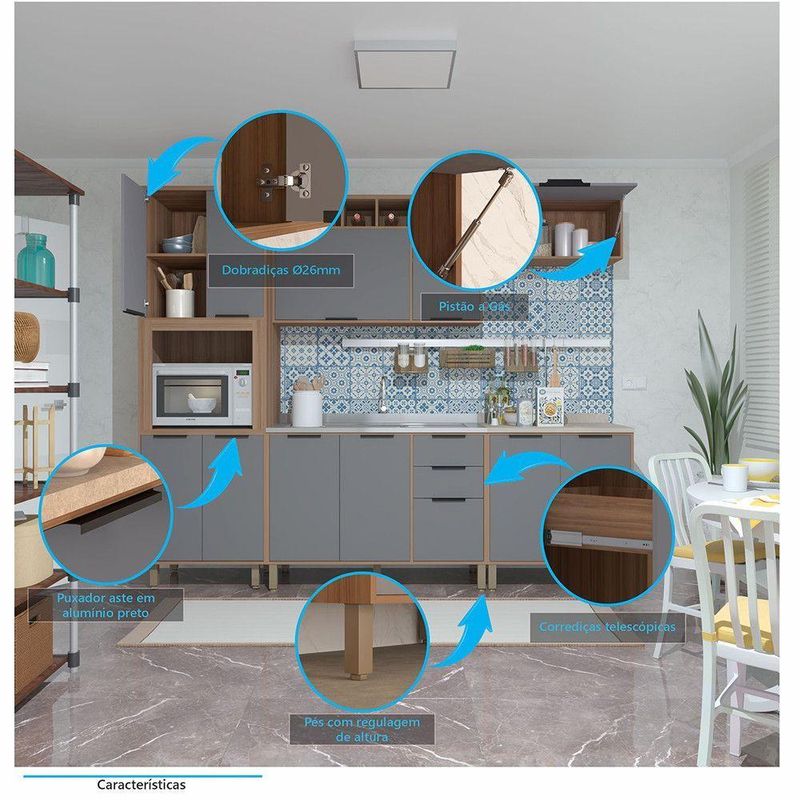 Desenvolvida com materiais de excelencia, a Cozinha Aspen oferece excelente distribuicao de espaco interno para sua organizacao. E fabricada em 100 MDP e possui acabamento das portas em BP oferecendo durabilidade, resistencia a riscos e facil manutencao. Conta com puxadores tipo Alca em Aluminio Preto dando um toque especial de classe e sofisticacao ao ambiente.