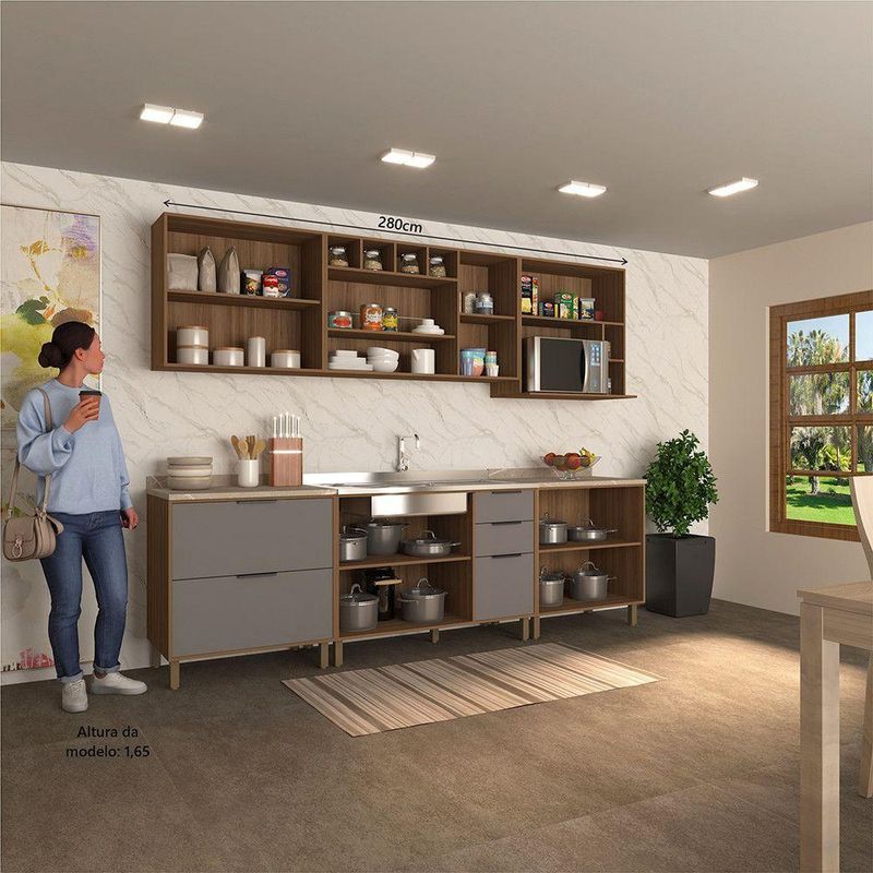 Coz Completa 6 Peças Gavetões Sem Tampo Aspen Luciane Móveis Vanilla/cinza Puro