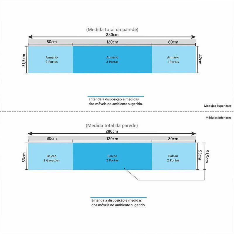 Medida Superior: 82 x 280 x 42 (A x L x P - cm)