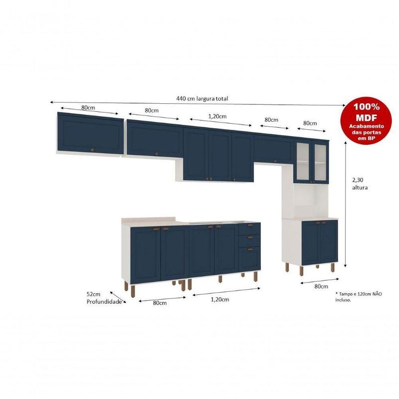 Cozinha Completa 7 Peças com Área de Serviço IntegradaTransforme sua experiência culinária com a Cozinha Modulada Completa 7 Peças, uma solução elegante e funcional para sua casa. Com um design sofisticado nas cores Branco/Azul e fabricada em 100% MDF, esta cozinha é ideal para quem busca praticidade e estilo em um único ambiente.Descrição do ProdutoA Cozinha Completa 7 Peças é mais do que um simples conjunto de móveis; é um convite à renovação do seu espaço. Com uma cristaleira com porta de vidro temperado e espaço para forno ou micro-ondas, você terá segurança e elegância para seus utensílios. As portas estilo Americano provençal conferem um charme especial ao ambiente, enquanto os balcões com altura planejada garantem resistência e conforto no dia a dia. As dobradiças com amortecimento e corrediças telescópicas proporcionam um funcionamento suave e durabilidade, tornando sua cozinha não apenas bonita, mas também prática.Atributos do ProdutoMarca: GENIALModelo: AzulComponentes incluídos: RacksCor: AZULDimensões do item (P x L x A): 52 x 440 x 230 cmExige montagem: SimFabricante: GenialIs Fragile: truePeso do pacote: 210 kgGarantia: 3 mesesMateriais do corpo: MDFTipo de móveis de cozinha: Cozinha completaEstado de Origem: RSPés ajustáveis: SimPistão com amortecimento: SimTampo: Sem tampoPor que Escolher a Cozinha Completa GENIAL?Além de sua estética refinada, a Cozinha Completa 7 Peças é projetada para oferecer a máxima funcionalidade e durabilidade. Cada detalhe foi pensado para proporcionar conforto e praticidade no seu dia a dia, desde a escolha dos materiais até a ergonomia dos móveis. Com um peso total de 210 kg, você pode ter certeza de que está investindo em um produto de qualidade que resistirá ao tempo.Transforme Seu Espaço Hoje Mesmo!Não perca a oportunidade de renovar sua cozinha e área de serviço com a Cozinha Completa 7 Peças da GENIAL. Adquira já a sua e descubra como é fácil e prático cozinhar em um ambiente que une sofisticação e funcionalidade!Fabricante: Genial | Cor: AZUL | Certificação de teste externa: NÃO | Exige montagem: Sim | Dimensões do item P x L x A: 52 x 440 x 230 | Materiais do corpo: MDF | Tipo de móveis de cozinha: Cozinha completa | Estado de Origem: RS | Peso Produto Com Embalagem (Kg): 210 | Garantia em Meses: 3 | Nome do Simples no Fornecedor: Genial | Comnto Produto Com Embalagem (cm): 140 | Altura do Produto com Embalagem (cm): 9,1 | Largura Produto Com Embalagem (cm): 38 | Largura do Produto (cm): 440 | Peso do Produto (Kg): 210 | Comnto do Produto (cm): 52 | Descrição do Tamanho: 52 x 440 x 230 | Altura do Produto (cm): 230