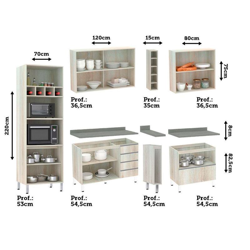 Cozinha Completa 7 Peças Com Tampo Lis Luciane Móveis Legno Crema