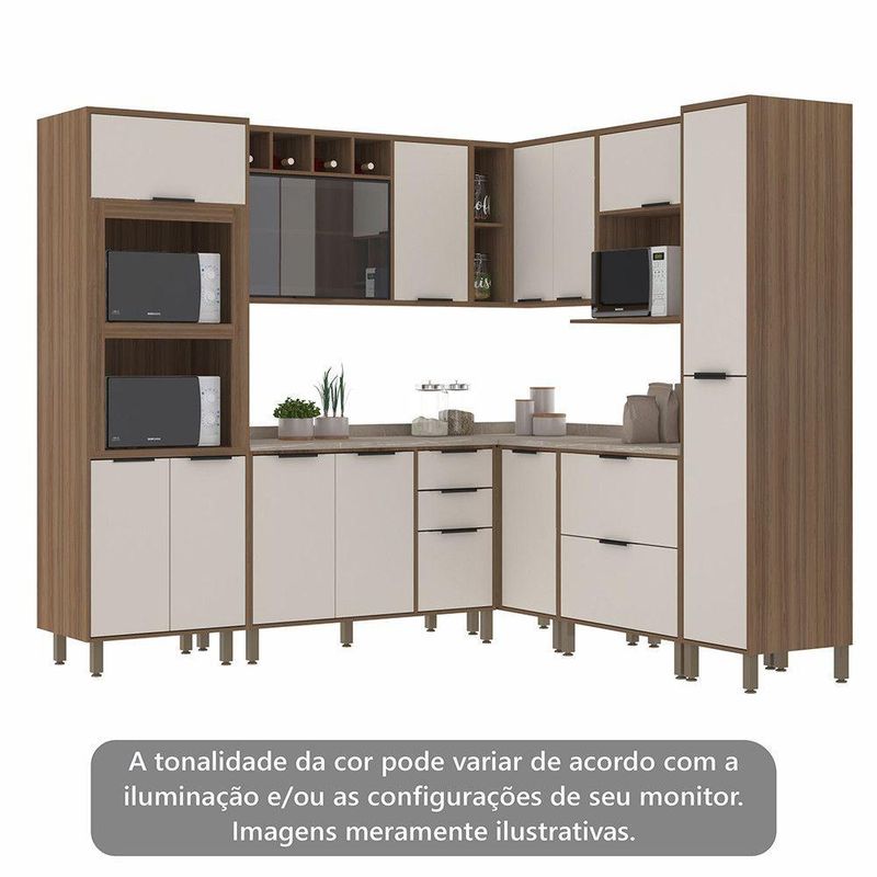 Cozinha Modulada Completa Com 8 Peças Vidro Reflecta Tampos E Paneleiro Aspen Luciane Móveis Vanilla/beige