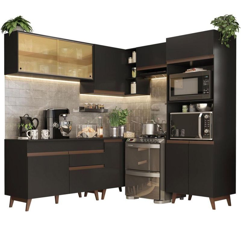 Cozinha Completa de Canto Madesa Reims 402002 com Armário e Balcão - Preto