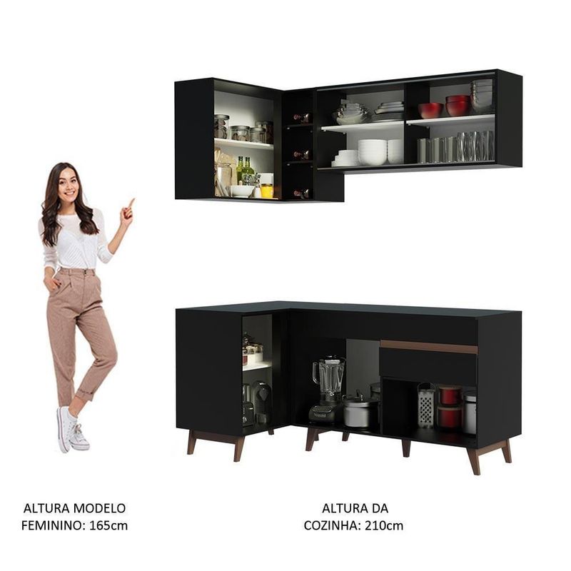 Cozinha Completa de Canto Madesa Reims com Armário e Balcão - PretoUma opção perfeita para ambientes que precisam de total aproveitamento de espaço.