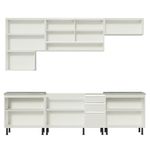 O espaço disponível é ótimo, com nicho especial para forno e dois balcões com tampo de 80 cm que podem ser recortados para instalação de cooktop. Além disso, o balcão maior possui espaço para colocação de pia de 120 x 52 cm. Para completar, os pés são reguláveis em PVC.