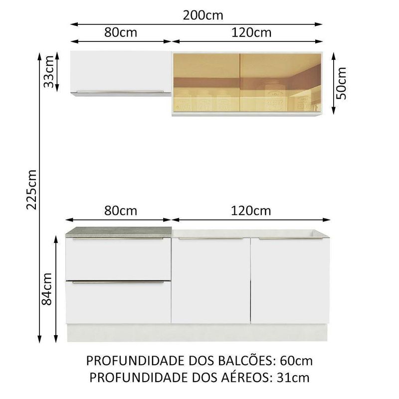 - 60 cm de profundidade no balcão e na torre e 31 cm no aéreo