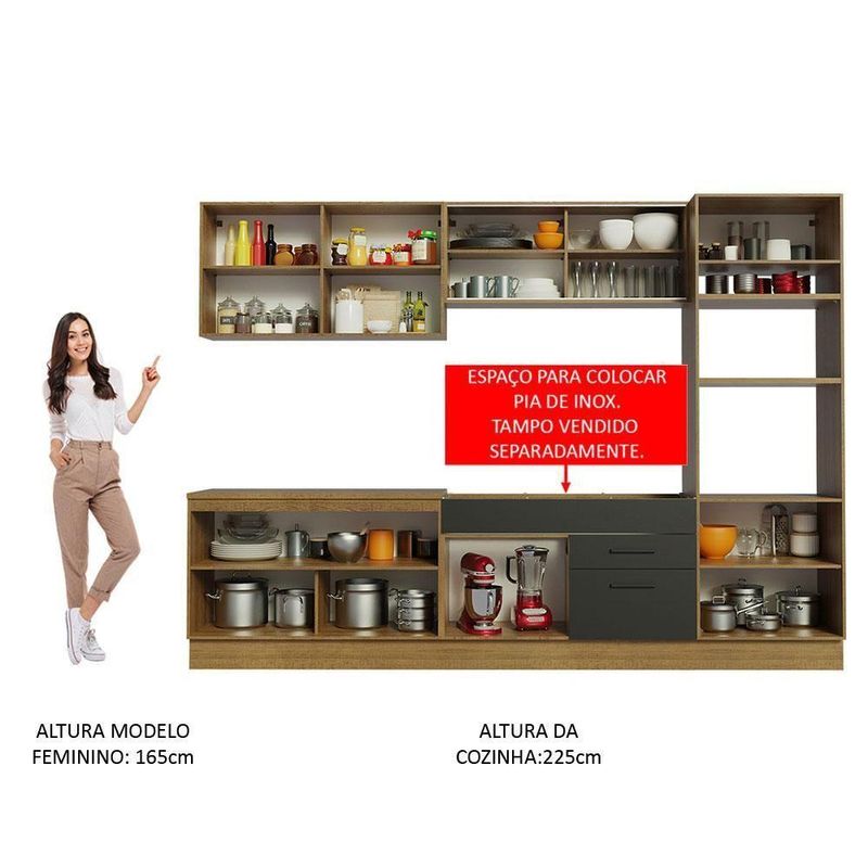 Cozinha Completa Madesa Agata com Armário e Balcão sem Tampo Rustico Preto
