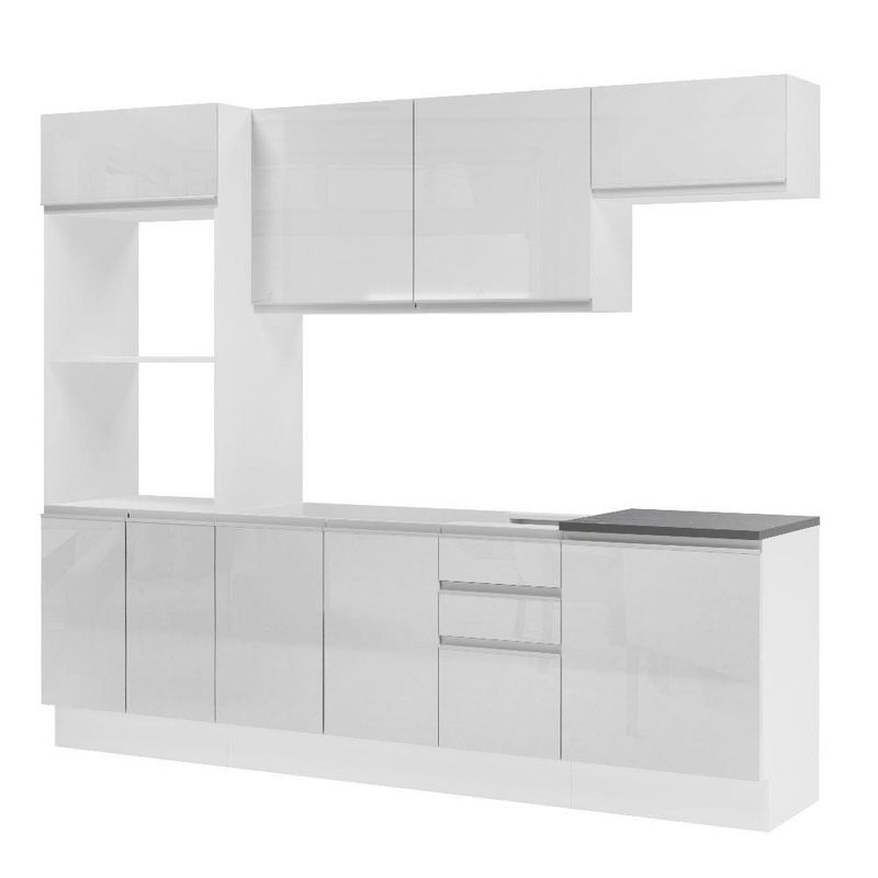 Cozinha Completa 100% Mdf Madesa Acordes 250003 Com Armário E Balcão - Frentes Branco BrilhoCor: Branco