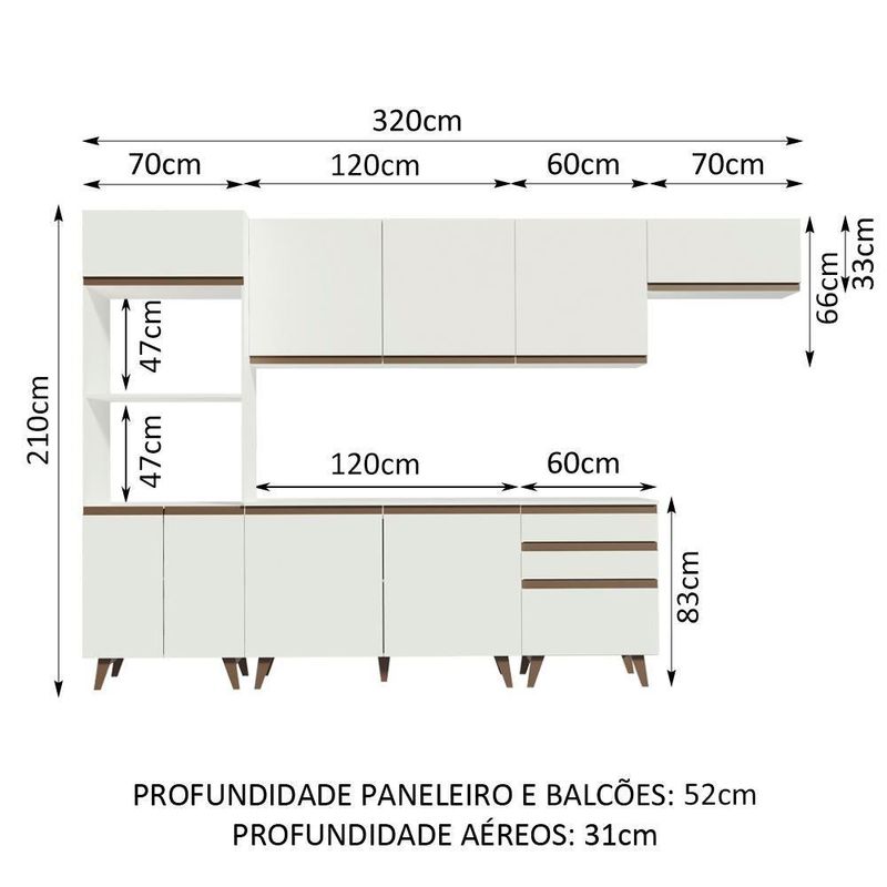 Cozinha Completa Reims com Armário e Balcão Branco MadesaCaracterísticas: