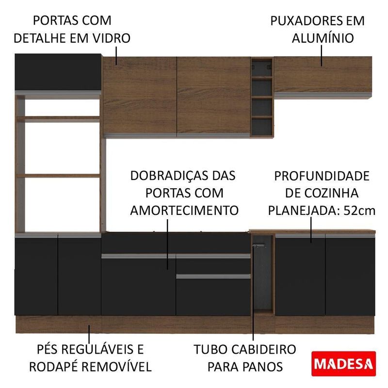 Cozinha Completa Vicenza Preto Rustic Armário Balcão MadesaA Cozinha Vicenza Glamy é a campeã de vendas da Madesa. Uma cozinha completa com design moderno e um ótimo acabamento.