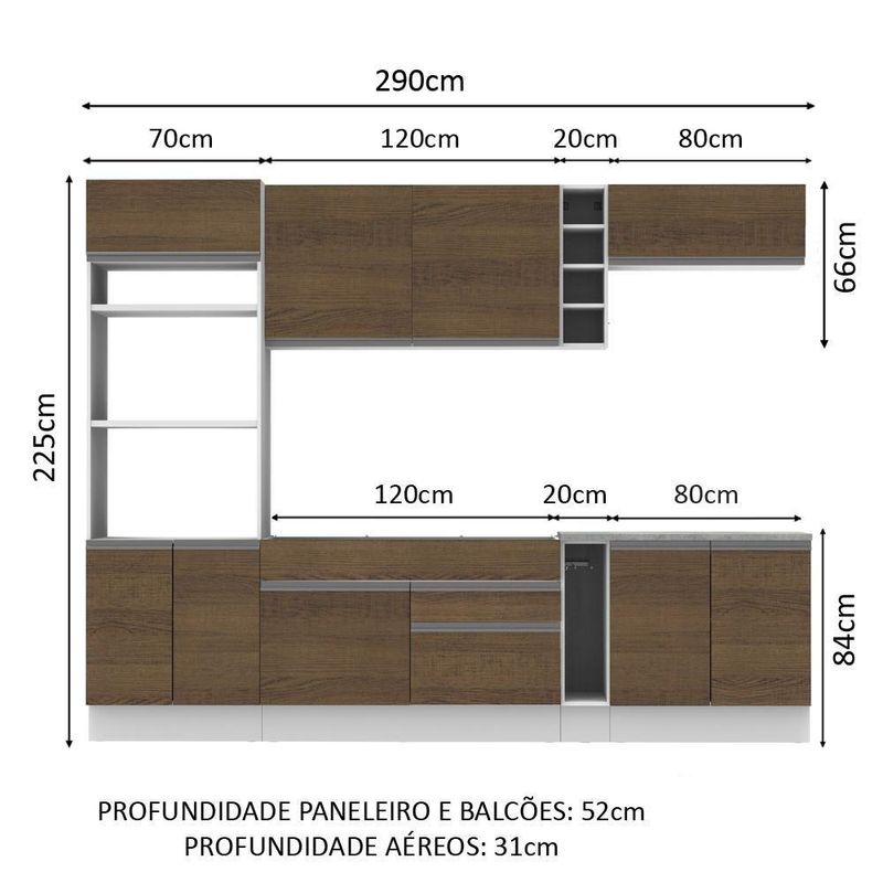 - Dimensões do Produto (LxAxP): 290 cm X 225 cm X 52 cm (Aéreos com 31 cm de Profundidade)