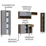 O acabamento da cozinha é em amadeirado Rustic, feito em Pintura Poliéster com 7 camadas que protegem o móvel dos efeitos do álcool da água e do calor.