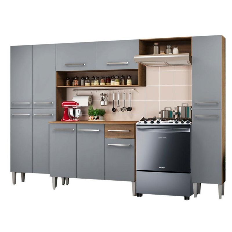 Cozinha Completa Madesa Glamy 315001 Com Armário, Balcão E Bancada (sem Tampo E Pia) - Rustic Rustic
