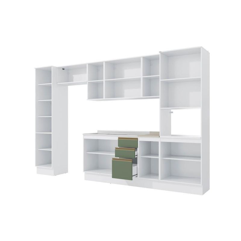 Cozinha Modulada Celeste Kappesberg 100% MDF Branco/Verde 8 Peças