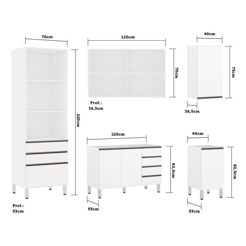 Cozinha Modulada Compacta Com Tampo 5 Peças Branco Vidro Reflecta Pérola Luciane Móveis Branco Polar