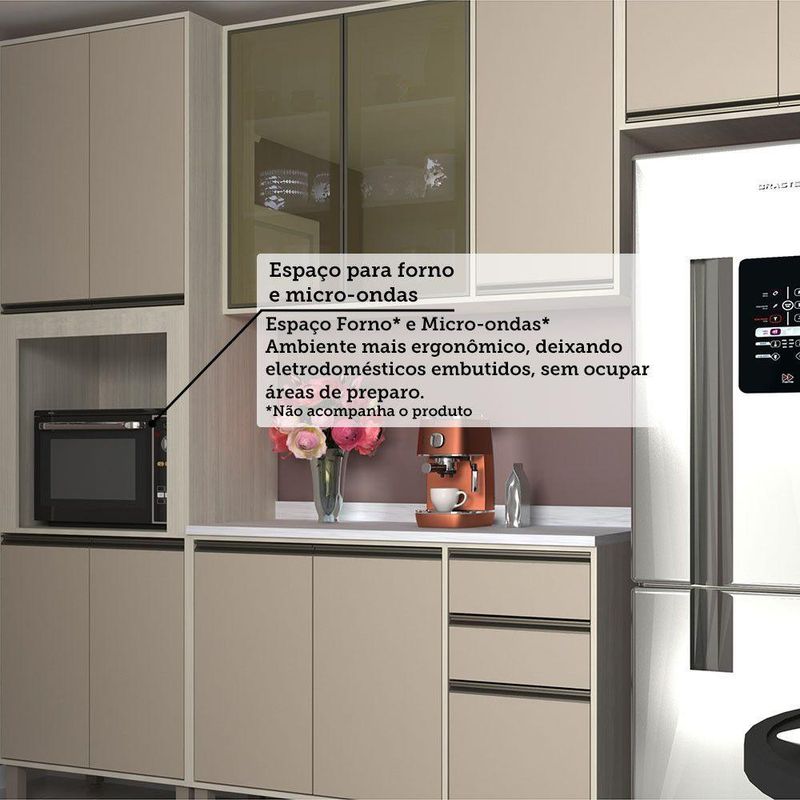 A Cozinha Linea foi desenvolvido aliando beleza e praticidade ao seu ambiente. As portas embutidas remetem ao planejado, ainda conta com acessorios requintados como dobradicas em 35mm com amortecimento Slowmotion incorporado para fechamento suave de portas, puxadores tipo gola em perfil aluminio na cor Inox e pes em PS (poliestireno) na cor champagne. Possui 3 gavetas com corredicas metalicas telescopicas em tres estagios, para abertura total. Perfeito para sua cozinha.