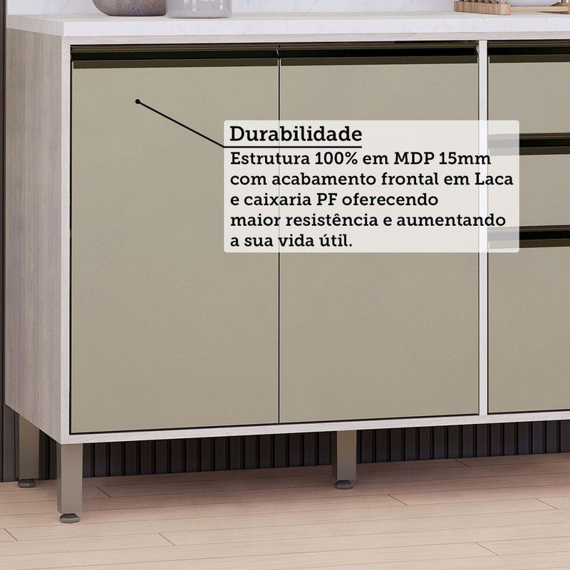 1-Balcão de Pia sem Tampo para Cozinha 120cm 2 Portas de Abrir, 3 Gavetas Linea Luciane Moveis (87 x 120 x 51,5)
