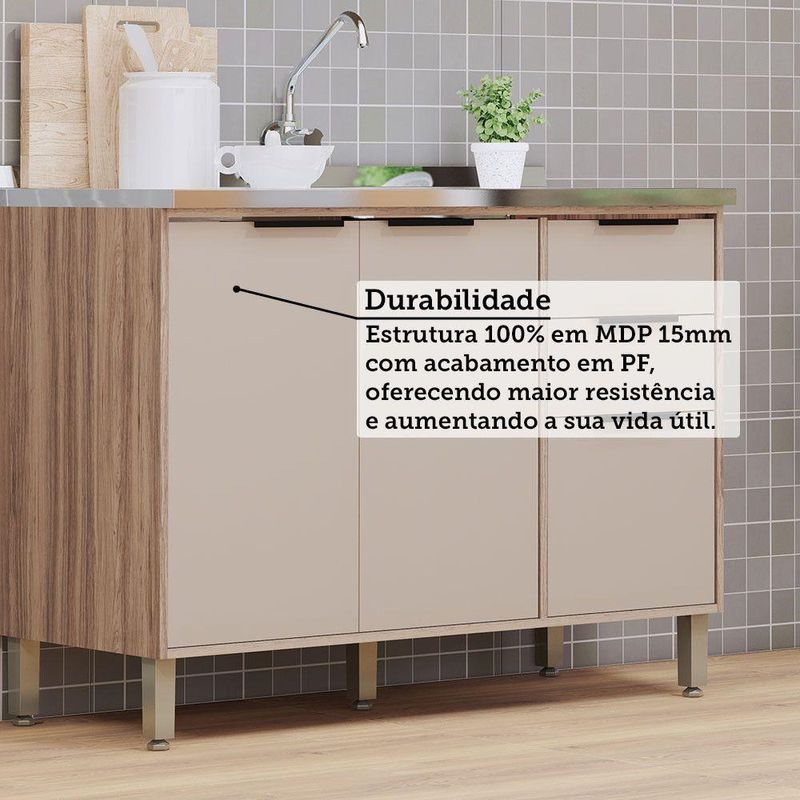 1-Balcao de Cozinha para Pia 120cm 2 Portas e 3 Gavetas sem Tampo Aspen Luciane Moveis (87 x 120 x 51,50)
