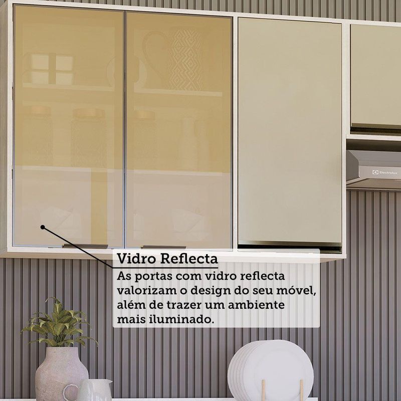 1-Armario Aereo de Cozinha 120 cm 1 Porta Fechada 2 Portas com Vidro Reflecta Linea Luciane Moveis (85 x 120 x 33)