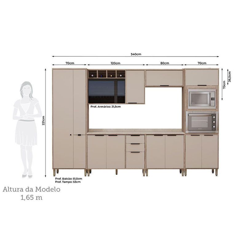 Cozinha Modulada Compacta 6 Pecas com Espaco para Forno e Micro-ondas com Tampo Aspen Luciane Moveis