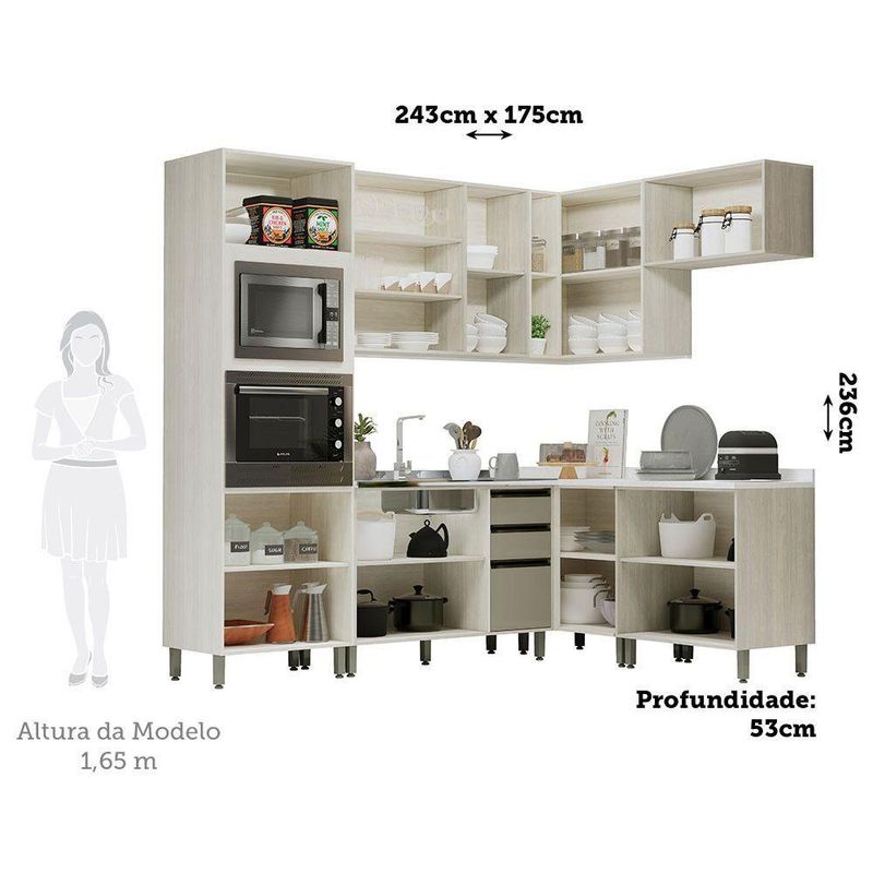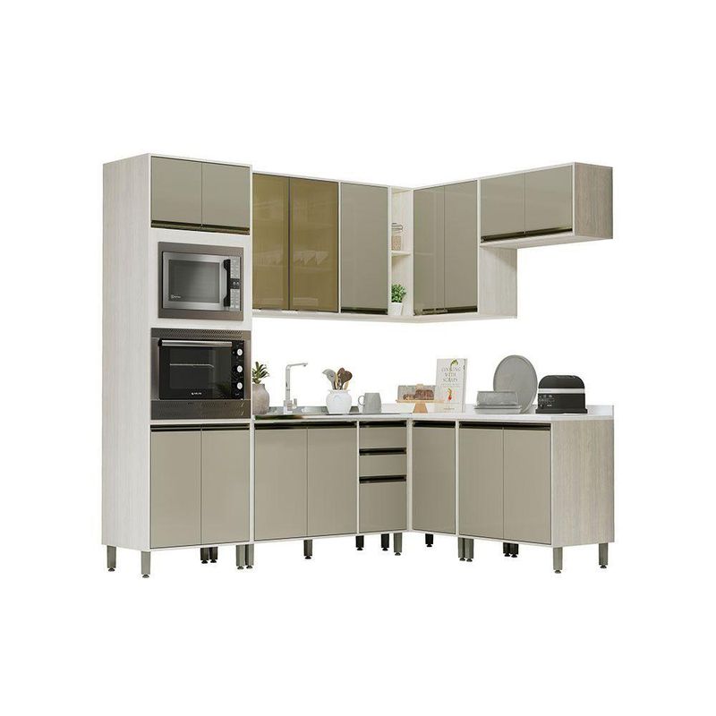 Cozinha Modulada de Canto Completa 7 Pecas sem Tampo Linea Luciane Moveis