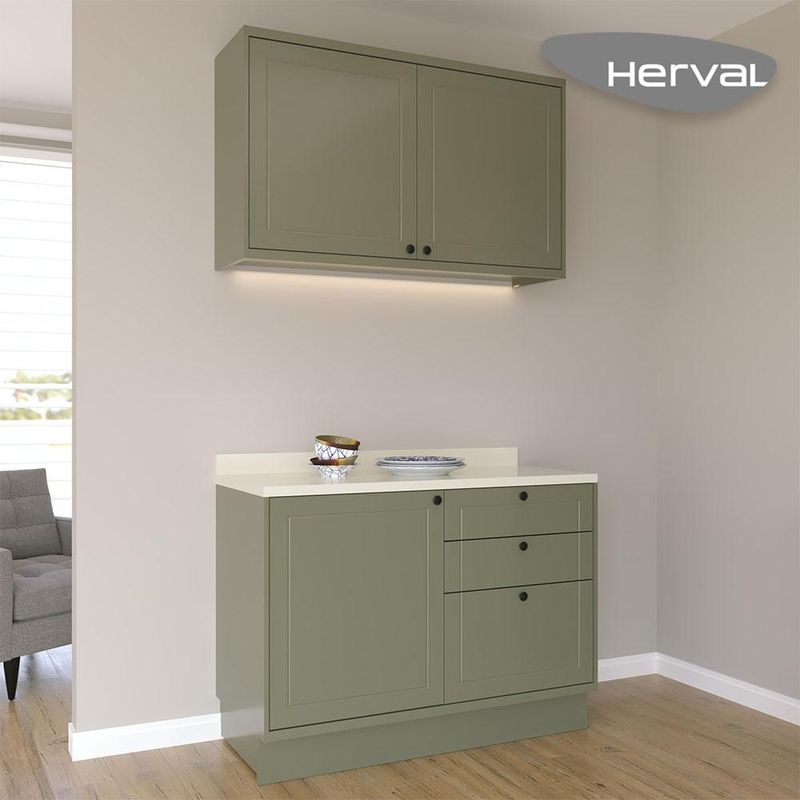 CARACTERÍSTICAS Marca: Herval Modelo: Viana Tipo: Cozinha Completa Cor: Verde Hill e Cinza Argila