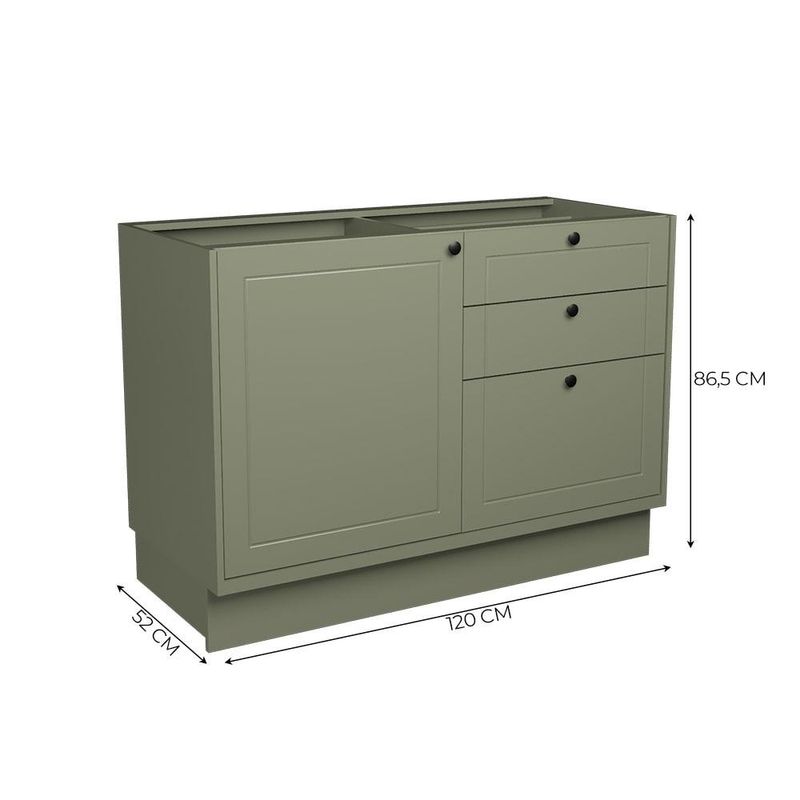 COZINHA MODULADA PEQUENA HERVAL VIANA, 3 PEÇAS, VERDE HILL E CINZA ARGILA, 120 CM