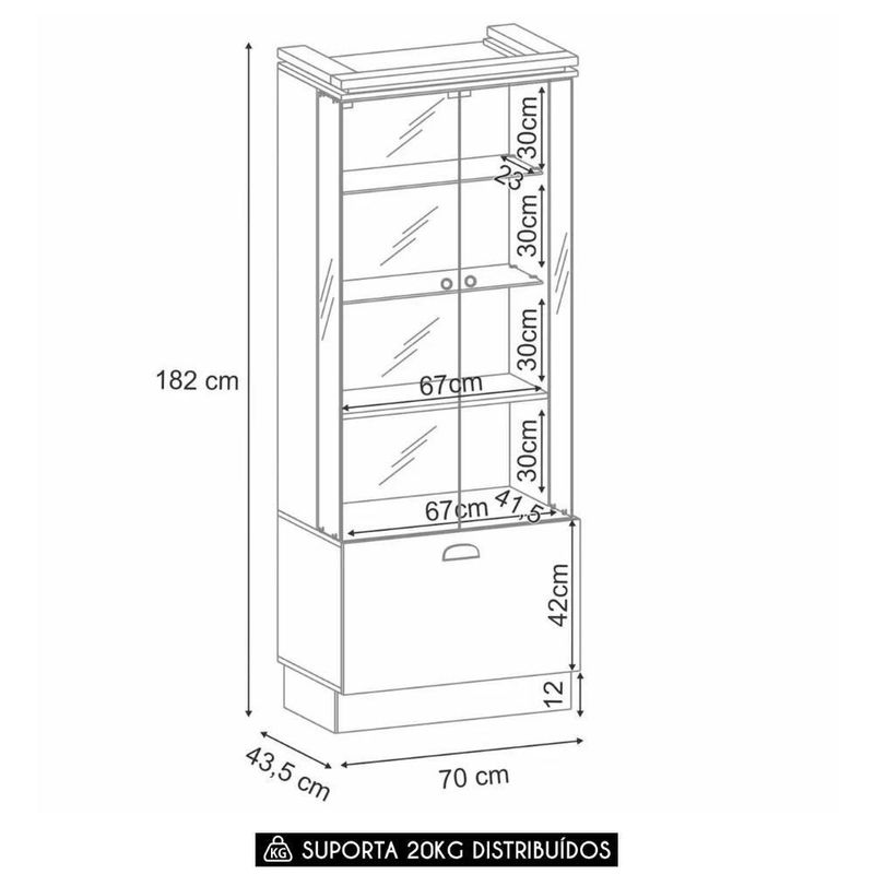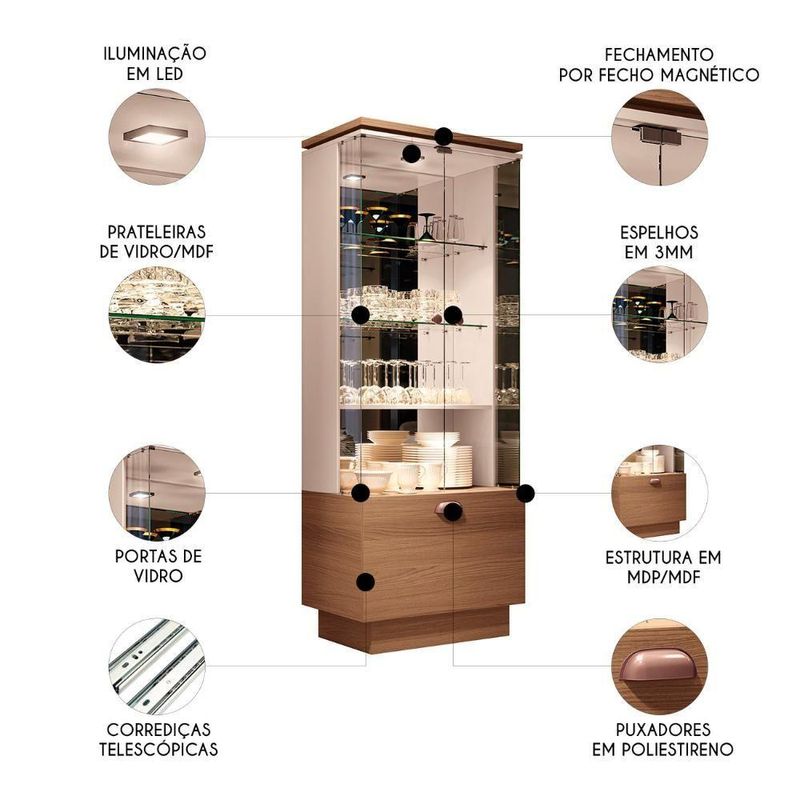 A Cristaleira de Vidro com Espelho Aura Off/Castanho , da HB Móveis é uma ótima opção para expor seus objetos de decoração, louças e taças com elegância e segurança.