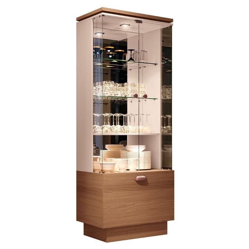 Cristaleira De Vidro Com Espelho Aura Off/castanho - Hb Móveis