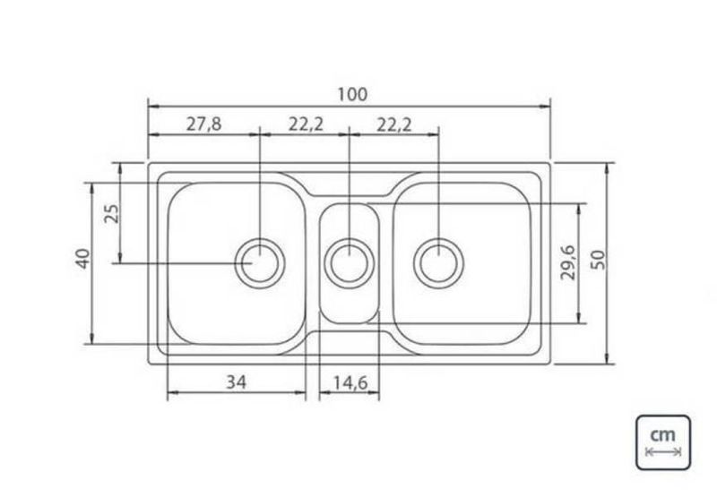 - Dimensões das cubas (C x L ): 34 x 40 cm e 14,6 x 29,6 cm;
