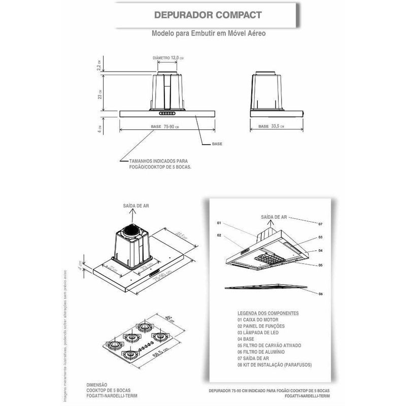 Observacao, este modelo deve ser embutido em armario aereo, acima do cooktop fogao, o depurador e fixado por parafusos no proprio movel