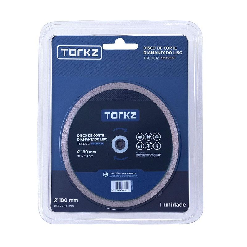 Itens Inclusos: 01 Disco Diamantado Torkz TRC0012 180mm Liso