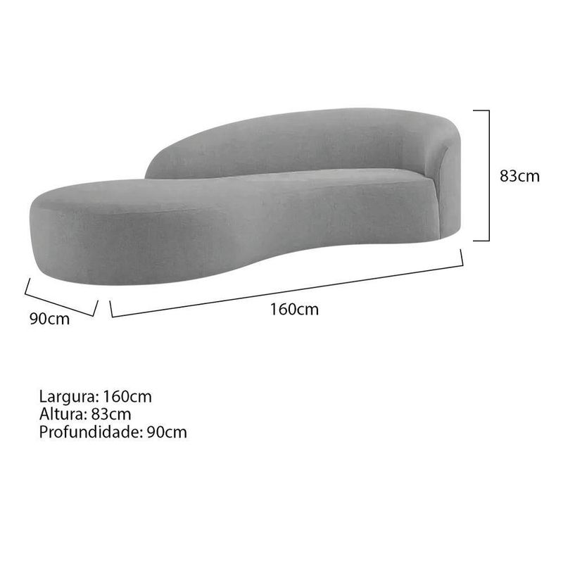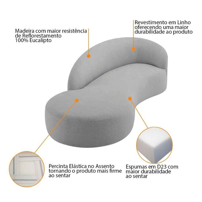 Divã Recamier Orgânico França 160cm Lado Esquerdo Linho - Doce Sonho Móveis Cinza Claro