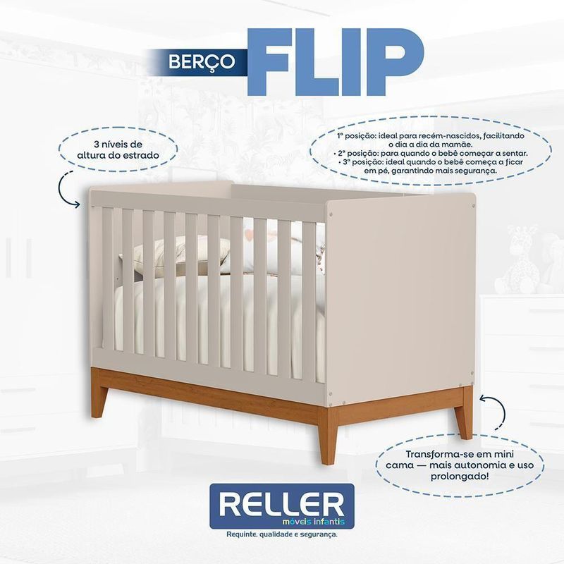 Dormitório Infantil Flip Guarda Roupa 3 Portas, Cômoda 4 Gavetas E Berço Areia Fosco - Reller Móveis Areia Fosco
