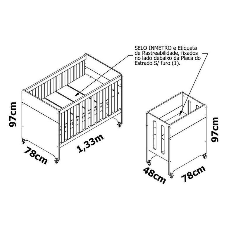 Tamanho quando Berço (L x A x P): 133 x 97 x 78 cm